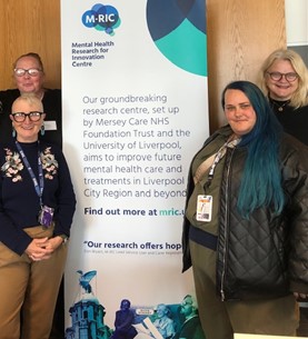 Gail Faragher (public engagement research coordinator PPIE team M-RIC) front left with Jeanette Murray- service user and carer representative and Michaela Jones front right with Jennie Wishart -public advisors.